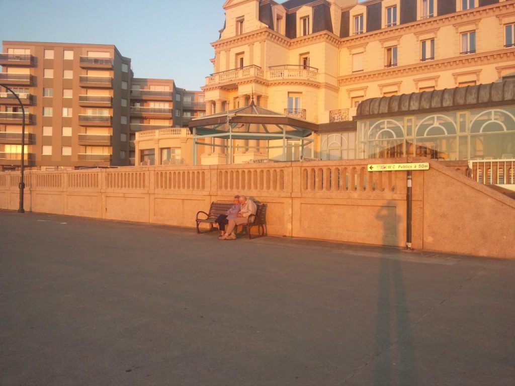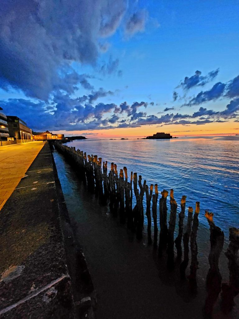 夏も冬も、朝も夜も、サンマロの海は魅力的。夕陽に寄り添う老夫婦がなんてお似合いなんだ!