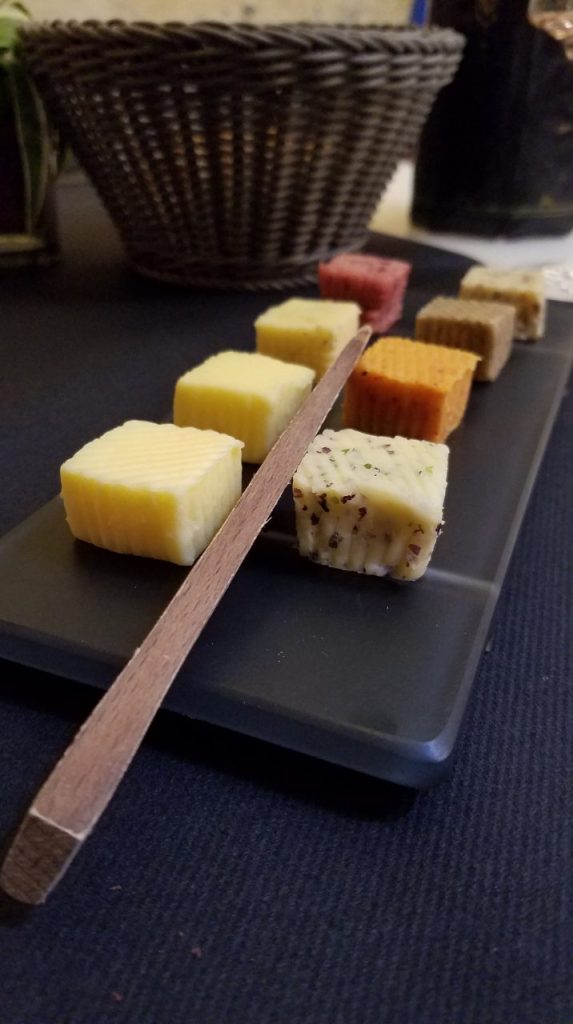 料理を待つ間、まずはパンと一緒に8種のBORDIERバターが楽しめます。