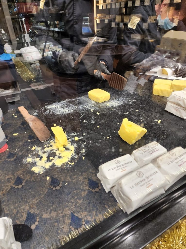 BORDIERのショップはサンマロ旧市街にあり、BORDIERの歴史紹介や実際のバター作り器具の展示、そして目の前で量り売りもしてくれます。