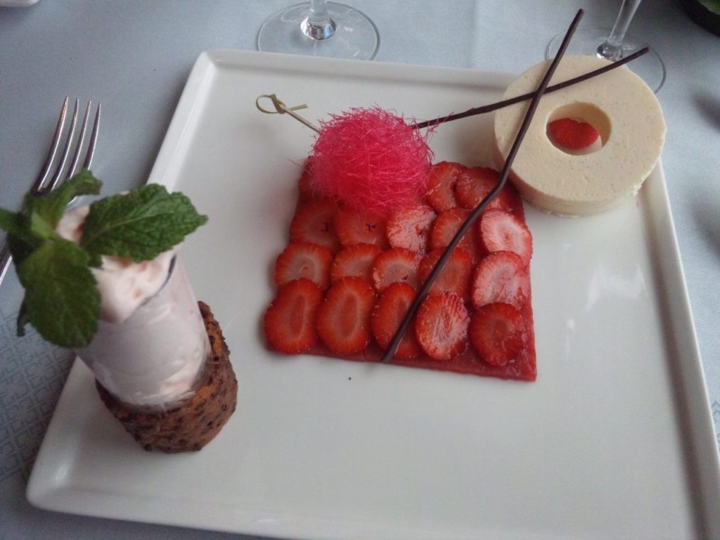 連日、どシンプルなシーフードのスターターに、メインもシーフード(鯛か舌平目だったかな)、時々うずら、みたいなデビューでした。