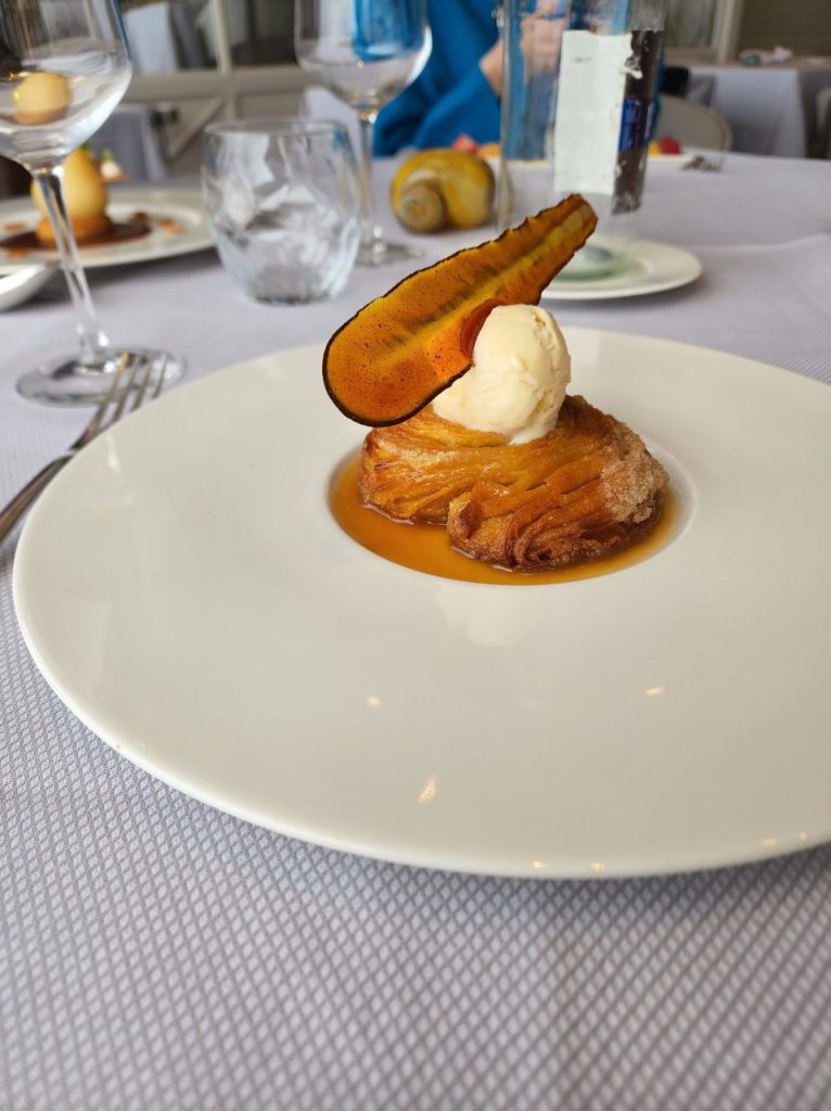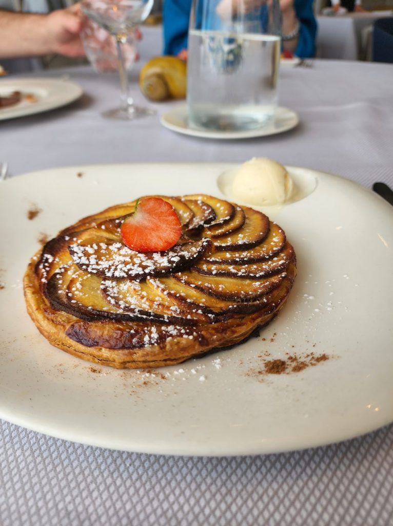 Tarte fine chaude aux pommes et sa glace aux graines de vanille