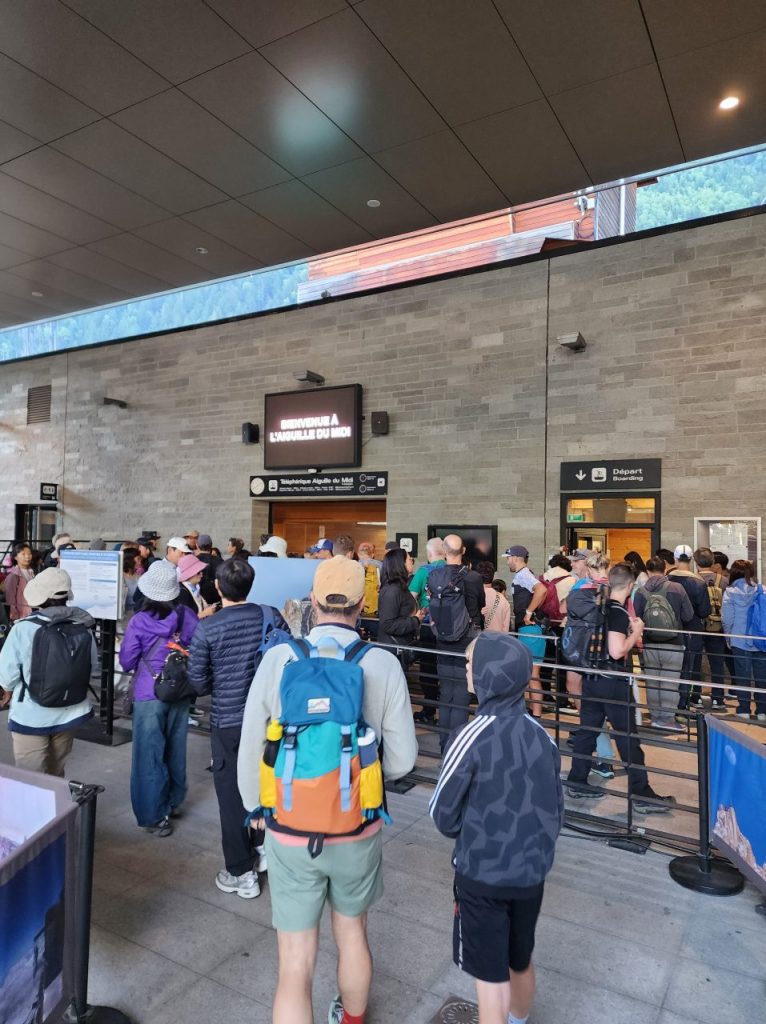 エギーユ・デュ・ミディのロープウェイは、事前予約するのをオススメしますが、天候次第なところもあるので、当日並ぶ(待つ)のを覚悟で行くのもいいでしょう。乗り場近くには、カフェがいくつもありますしね。