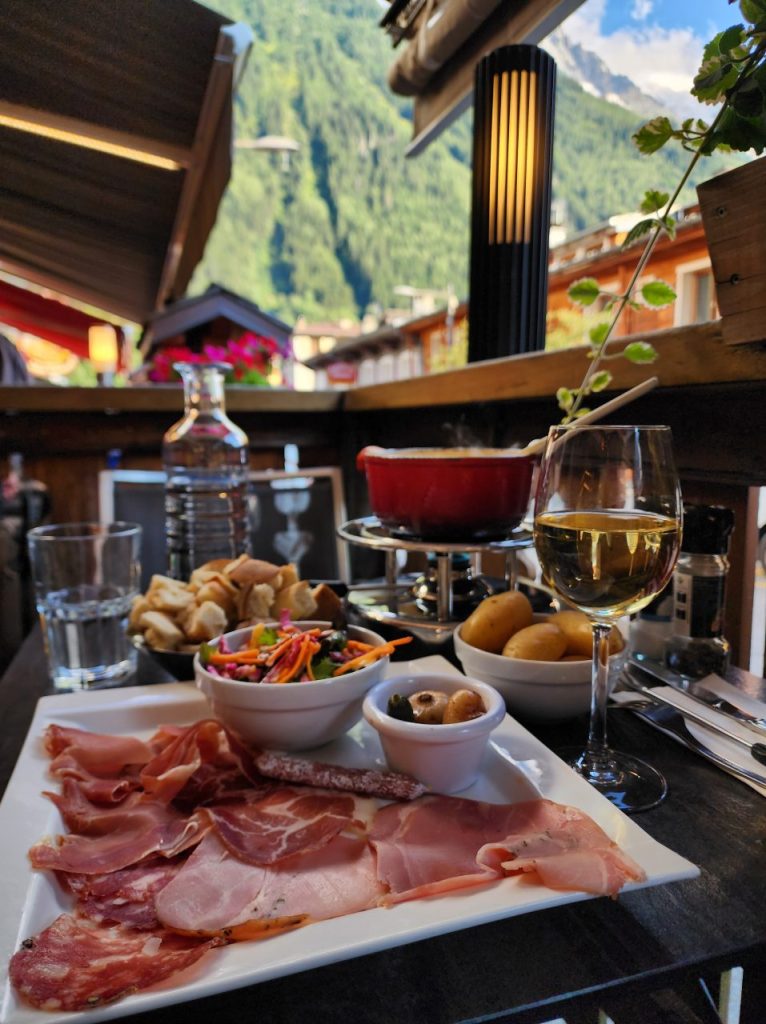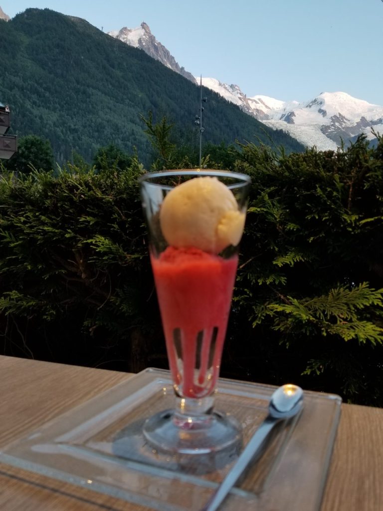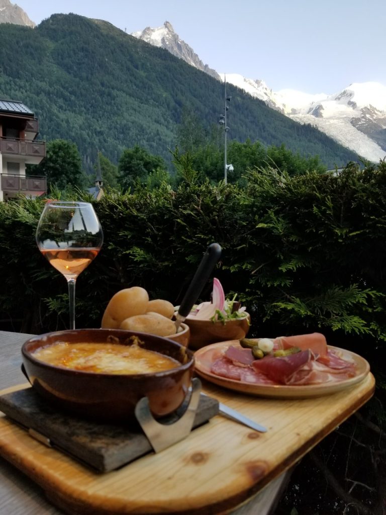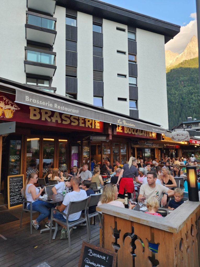 シャモニーで、地元に愛される庶民派代表レストラン。ロケーションが最高でモンブランの山々眺めながらいただけます。