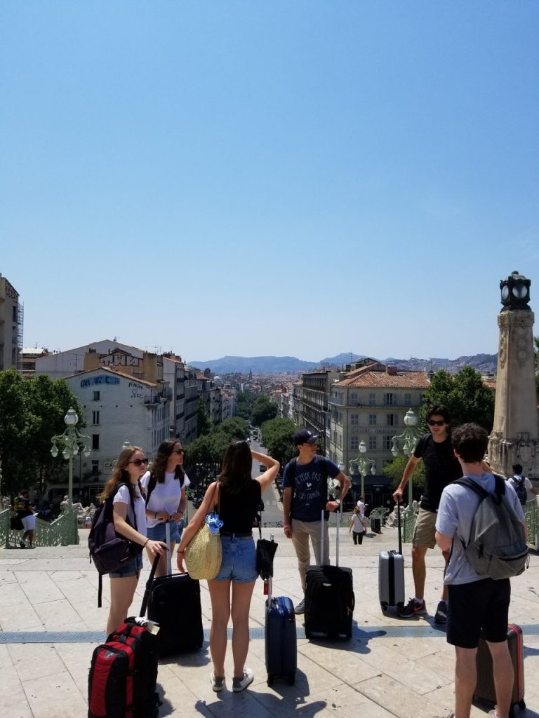 マルセイユの名所、マルセイユ・サン=シャルル駅の大階段周辺は、これから旅立つ人たちが交差しあう、ボーダーレスな場所。