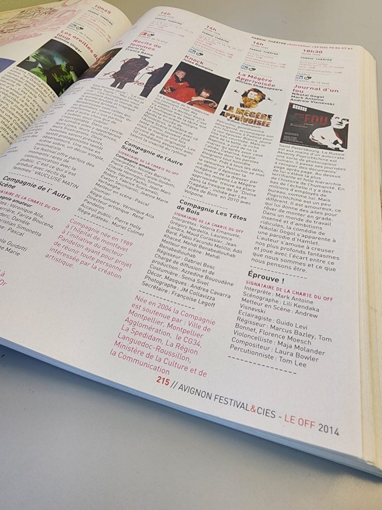 2014年当時のプログラム冊子。今では、世界的に有名な演劇家も名を連ねていることも珍しくありません。
