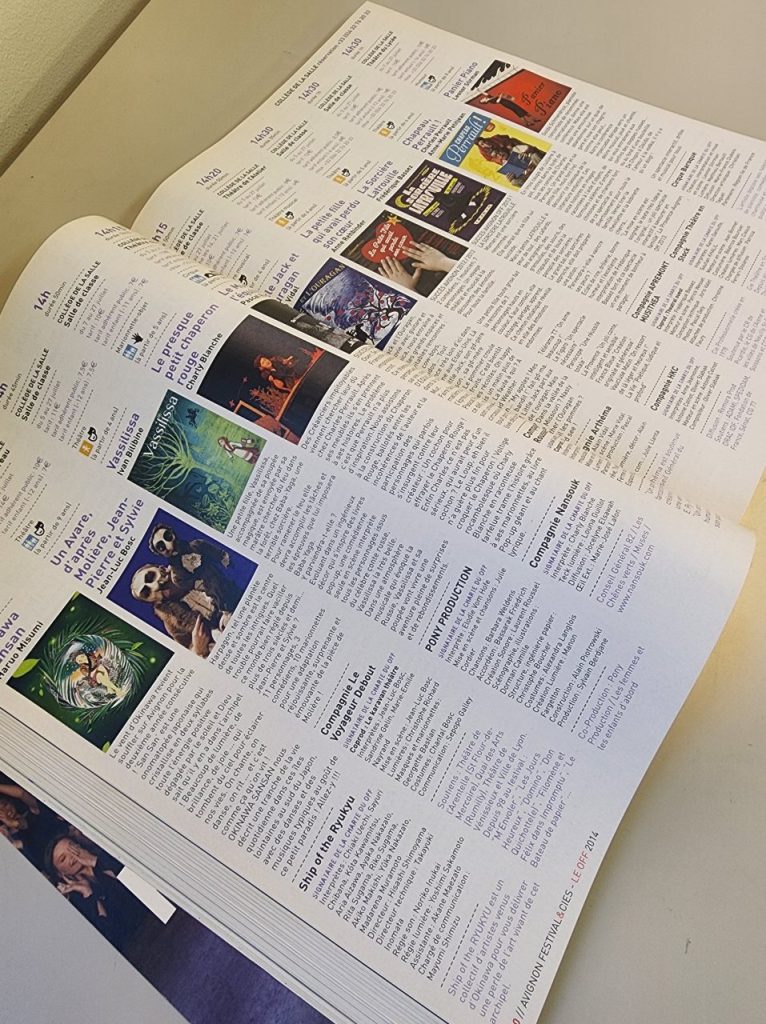 その城壁内の旧市街すべてが、夏の1ヶ月間、演劇一色に染まります。映画がカンヌなら演劇はアヴィニョンと並び称される、1947年から始まった夏の祭演、アヴィニョン演劇祭。通称「アヴィニョン・フェスティバル」(Festival d’Avignon)。