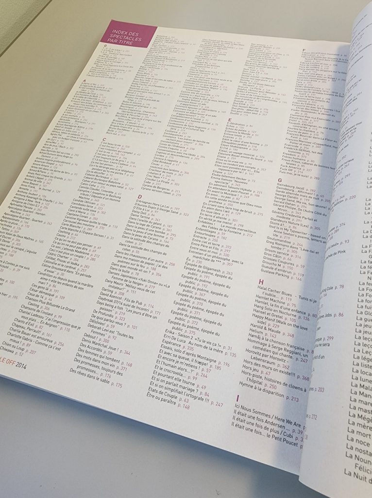 レストランやカフェのテラス、はたまた大通りでも、予告なく不意にパフォーマンスは始まります。これもすべて営業の一環、このグループのステージを見たい!となればチラシを受け取るかタウンページほどあるプログラムカタログを見て、観劇スケジュールを立てていきます。
