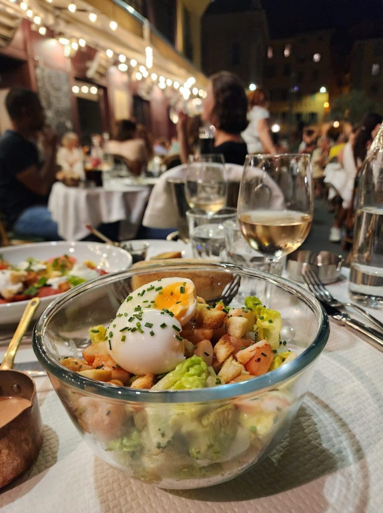 海岸沿いのレストランはもちろん、旧市街の中のビストロでもその新鮮な魚介類を使った料理が食べられるので、ここはひとつロゼワインと一緒に。