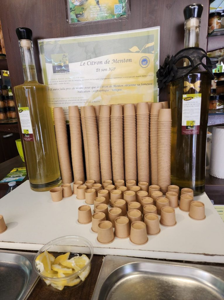 人気のショップ「Le Comptoir de Mathilde Menton」では、リモンチェッロの試飲はもちろん、量り売りのオリジナルカクテルがギフト用に人気なのだと。