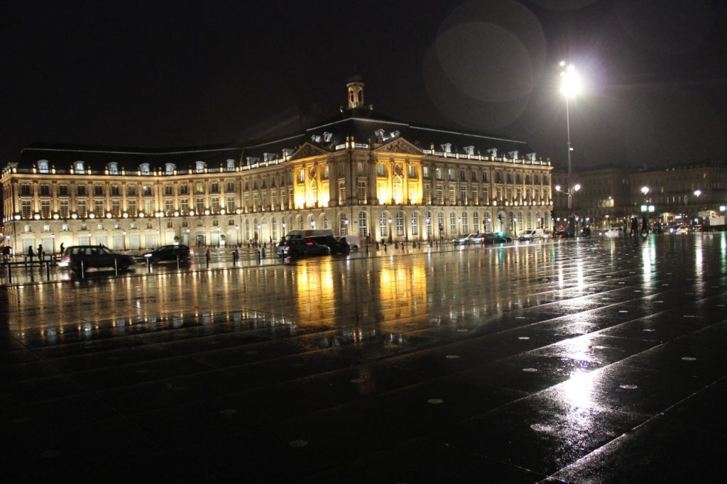 ボルドー最大の象徴的場所、ブルス広場(La Place de la Bourse)。その水鏡(Le mirroir d’eau)は、年間の約半分にも及ぶ雨が作り出す、自然の芸術です。