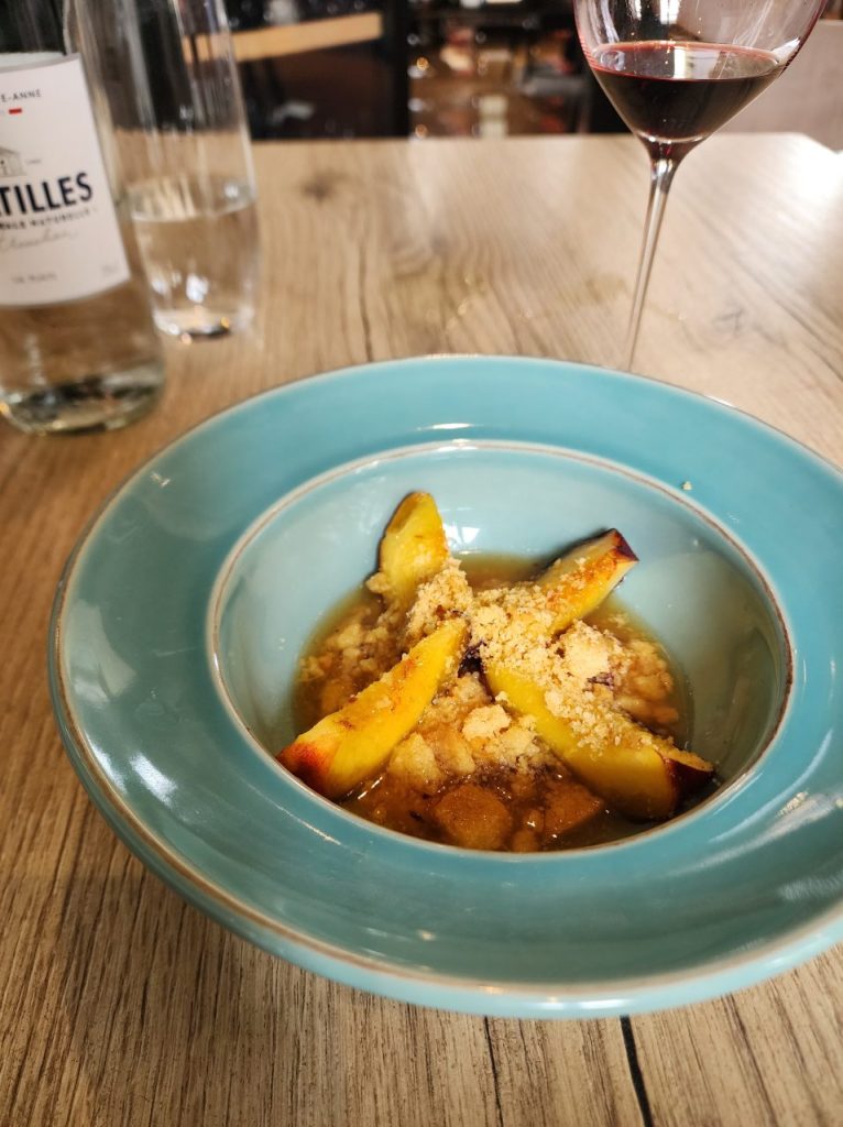 PÊCHE AU SIROP DE VERVEINE, CRUMBLE
