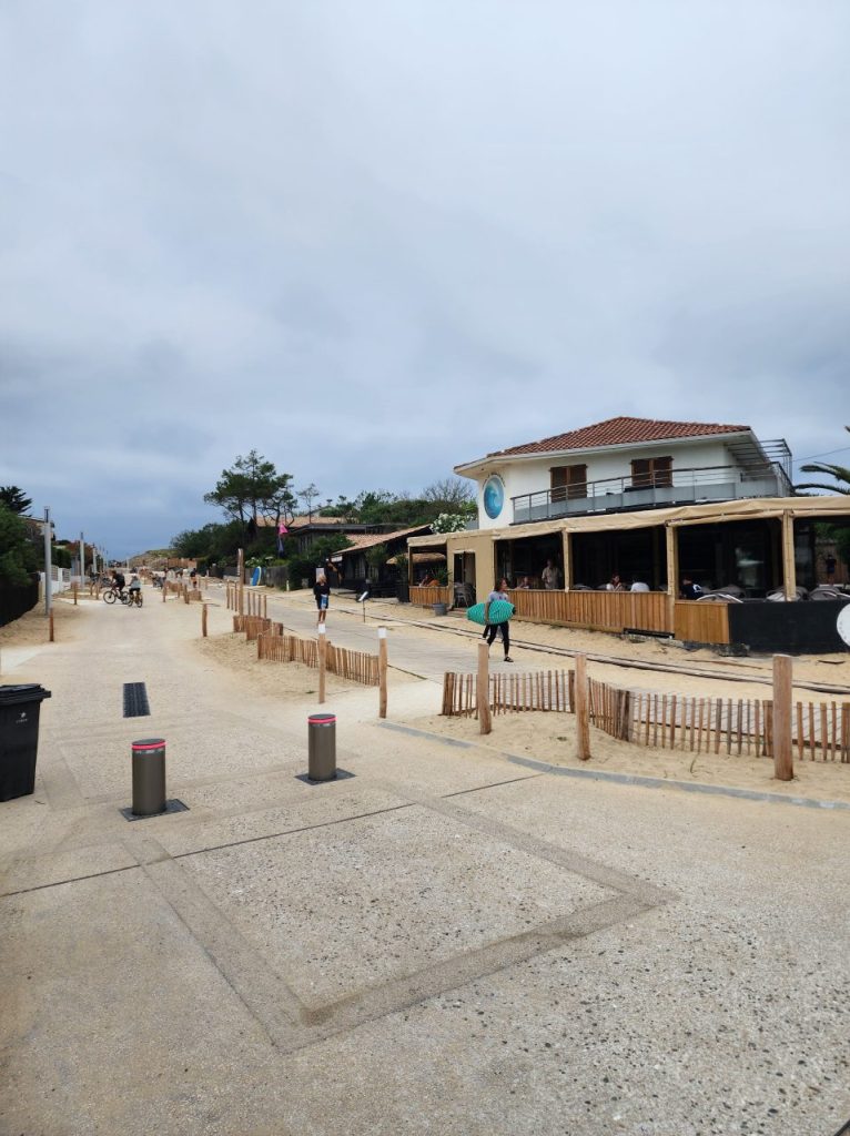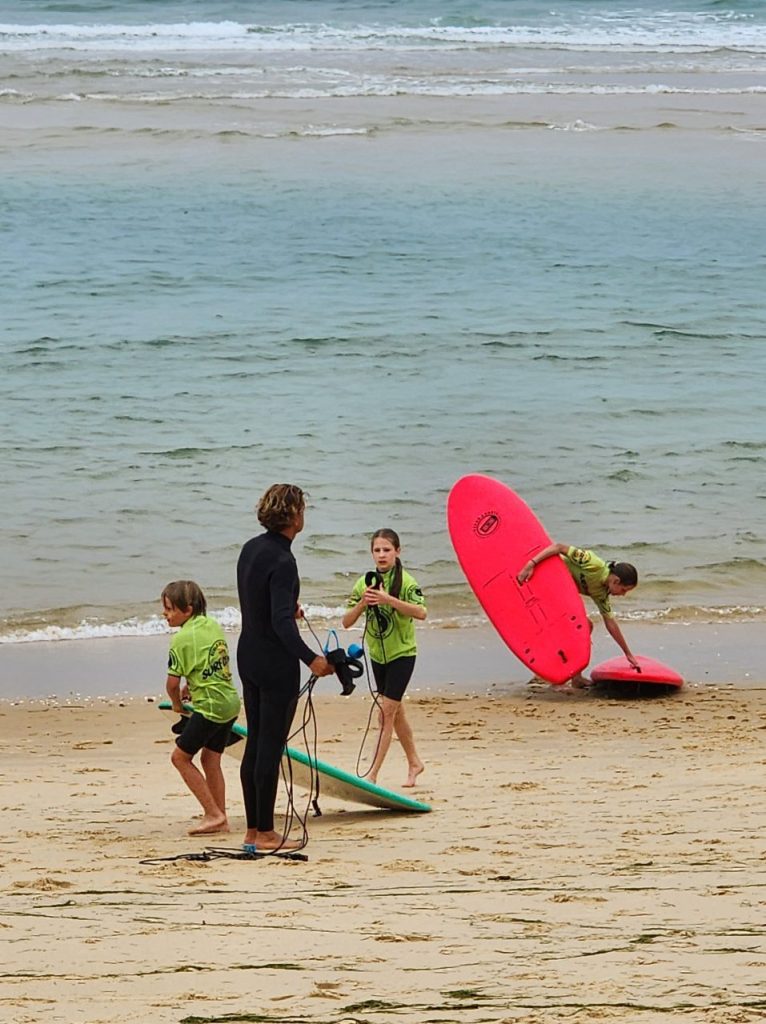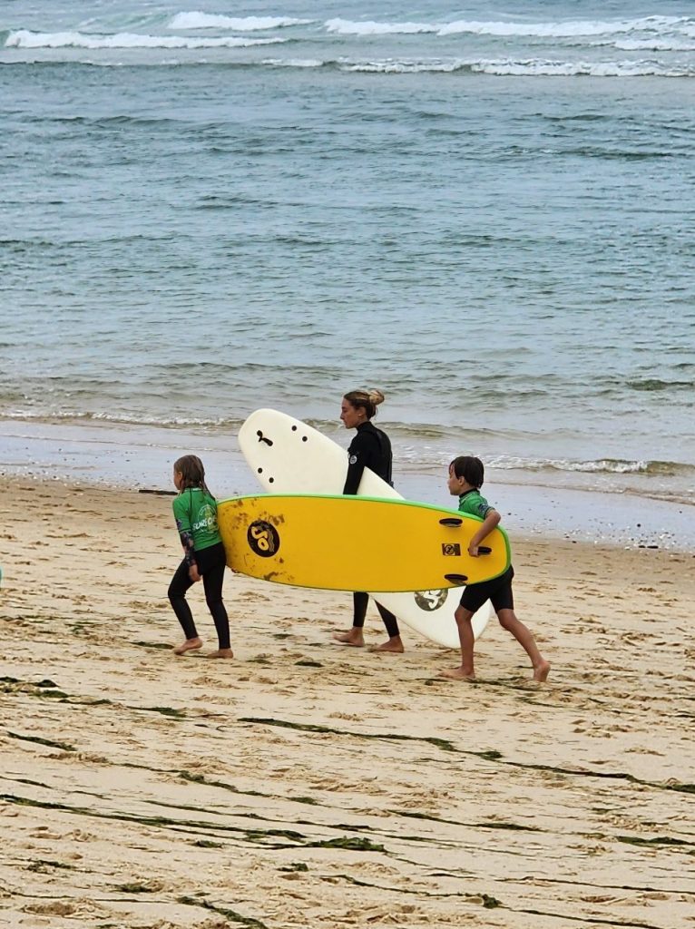 この海岸は、ビアリッツと比べると穏やかなのかな、子供のためのスクールが多い。たくさんの子供たちが波と戯れてましたよ。