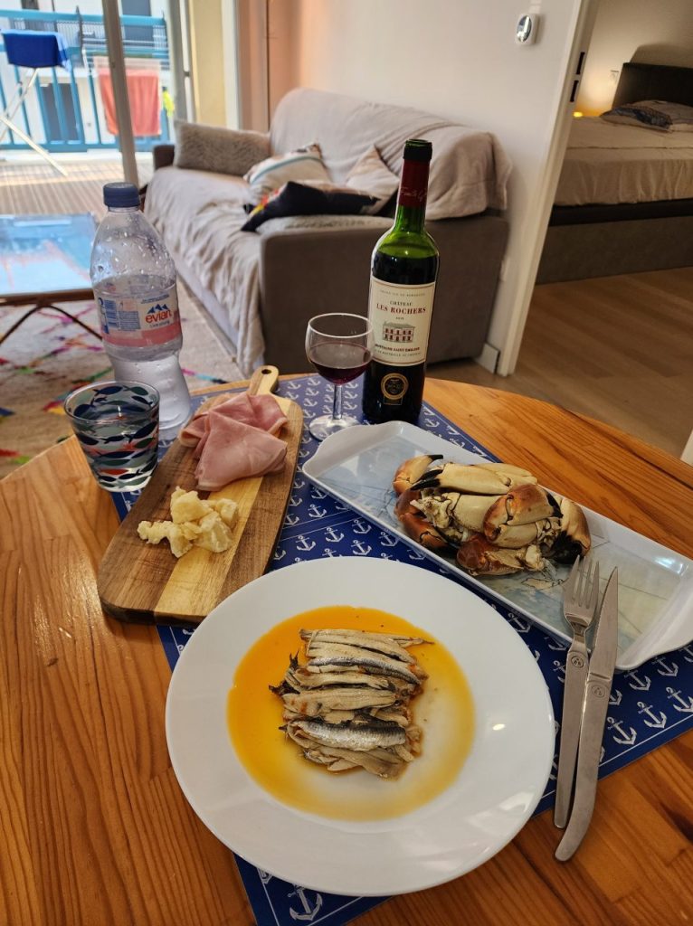 アルカションでのAirbnbもすばらしい部屋に恵まれ、ボルドー、アルカション、カップフェレと連日の美味しい外食で胃も贅沢しすぎたこともあり、この日はゆっくりAirbnbディナー。