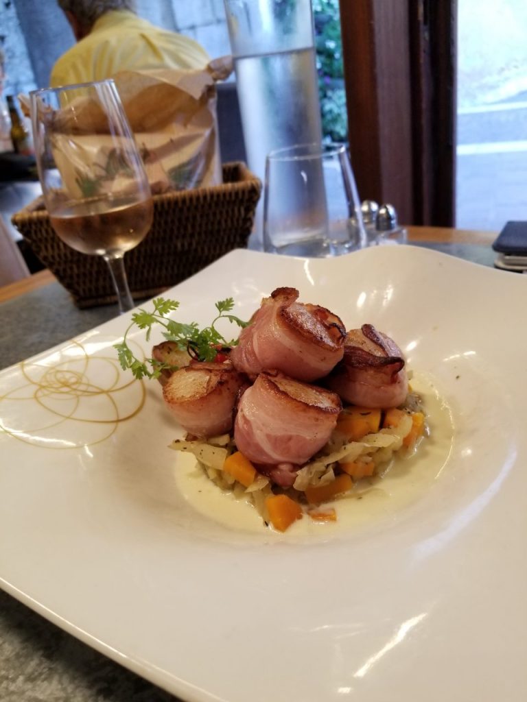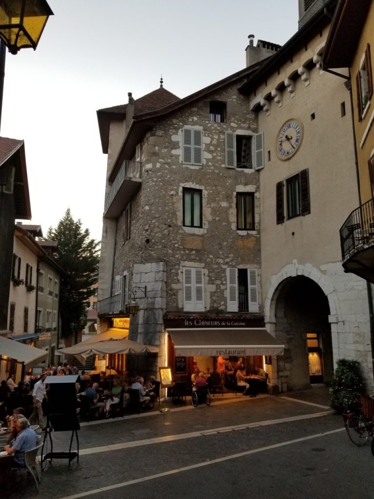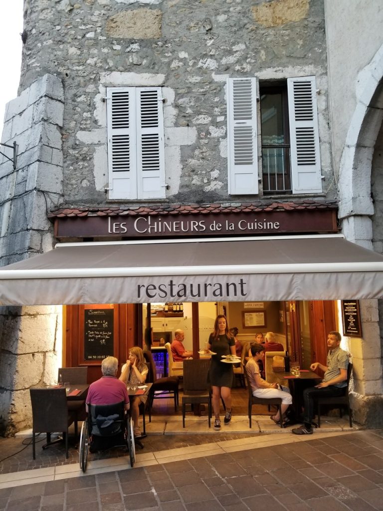 旧市街、アヌシー城やパレ・ド・リルの反対側の左端、ひときわ食通っぽい紳士淑女が集まるエリアがあって、雰囲気よろしく、その中で、ここだとビビっと。