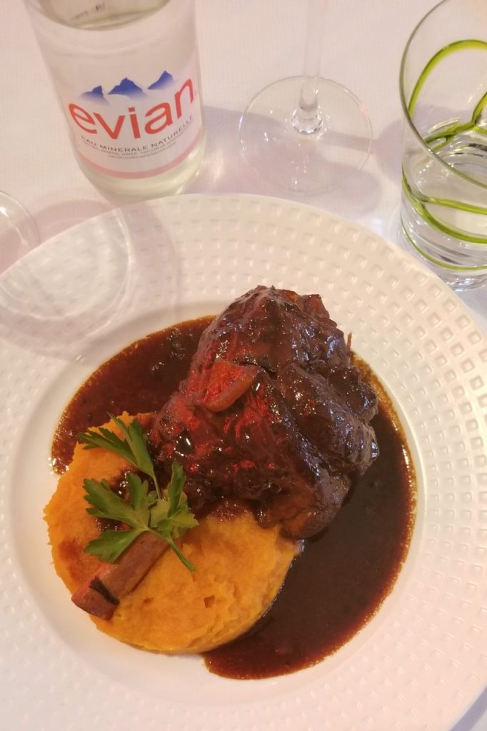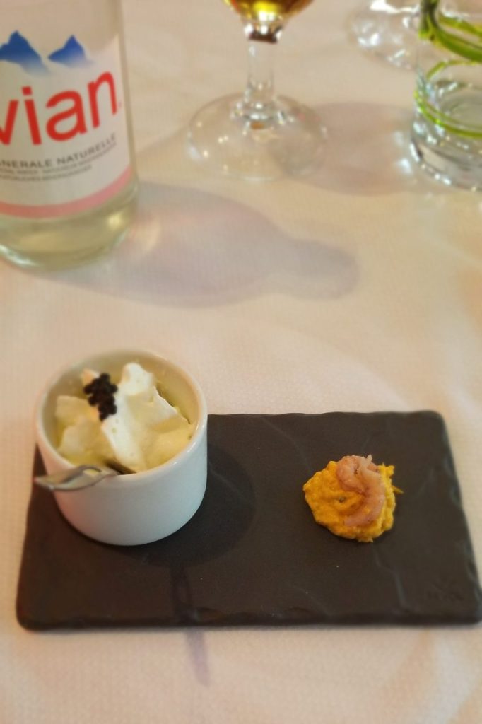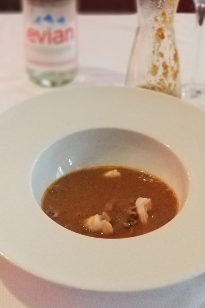 前菜、絶品オマール海老のビスク、そして子羊のロースト。21€。お値打ち価格。