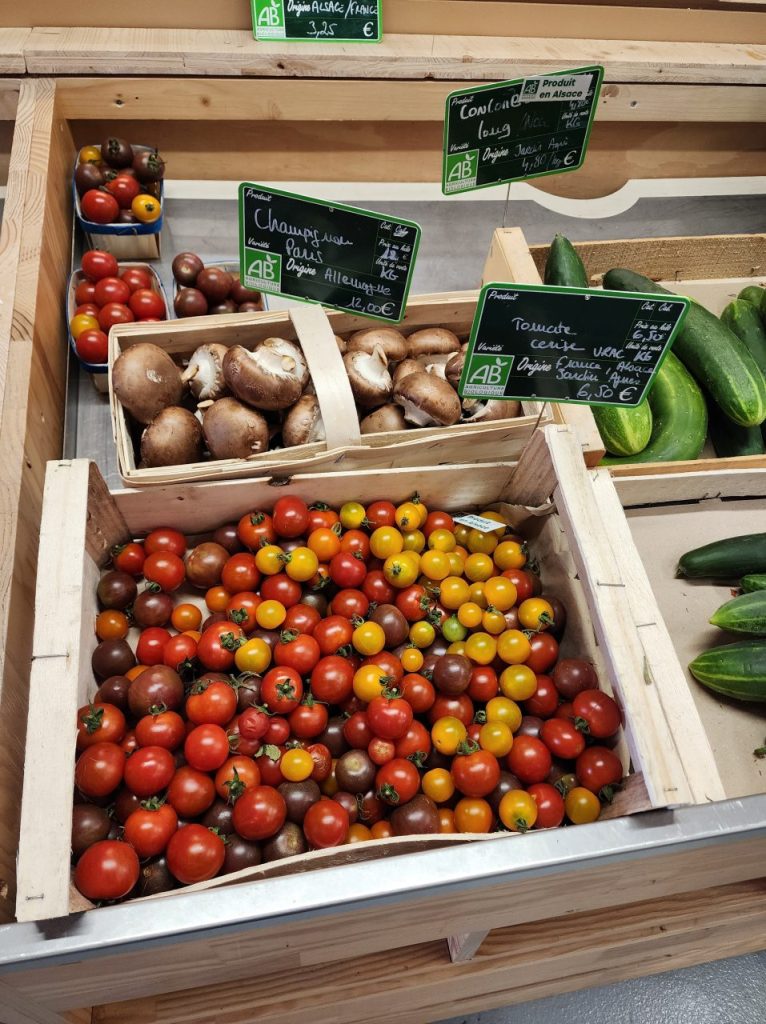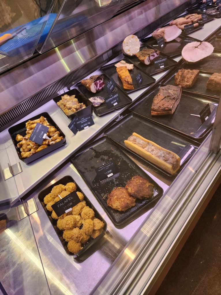 Koomaには、青果物だけでなく生肉やシャルキュトリー、チーズ、加工品総菜、スウィーツ等々、多くの食料品が販売されていて、アルザスワインやリースリングと共に、外でそのままパーティスタイルで楽しむことも可能です。