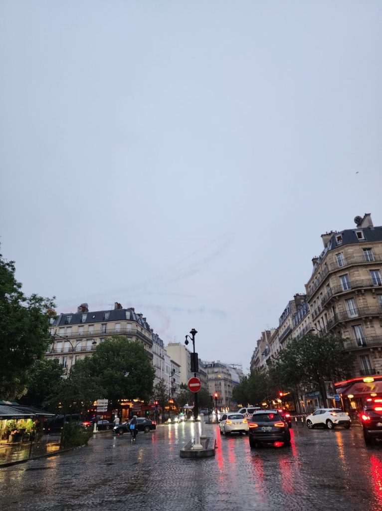 陽も暮れだし、いよいよ開会式が始まる1~2時間前。車の横行や路駐のない街から更に人もまばらになり、いつものパリじゃないみたいだ。