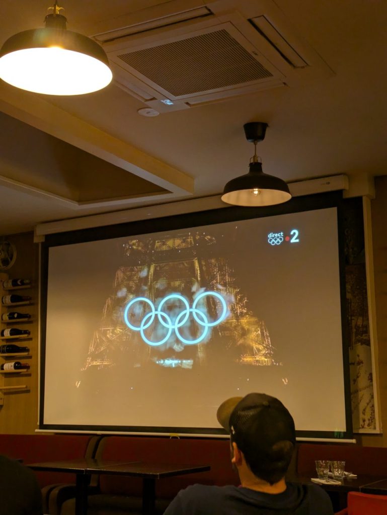 パリ市内、街中のバルがパブリックビューイングで開会式を放映していて、あちこちから賑わう声や歓声が漏れ伝わってきました。