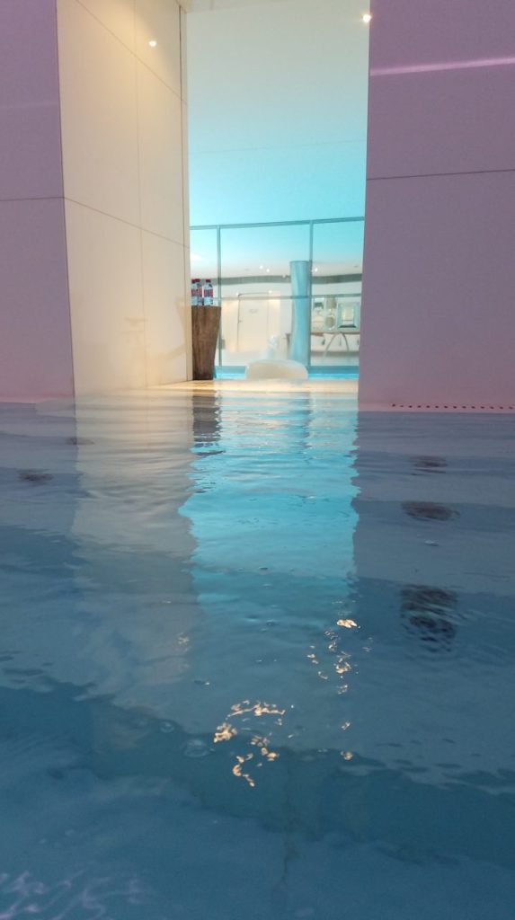 一日中出入り自由につき、アクア、フィットネス、サウナ、ハマム、カフェ、何度でも使えて、ドリンクフルサービス、フルーツも好きなだけ食べられる。ランチも外に食べに行ける。街歩きに疲れたら戻ってきてカラダをほぐす。