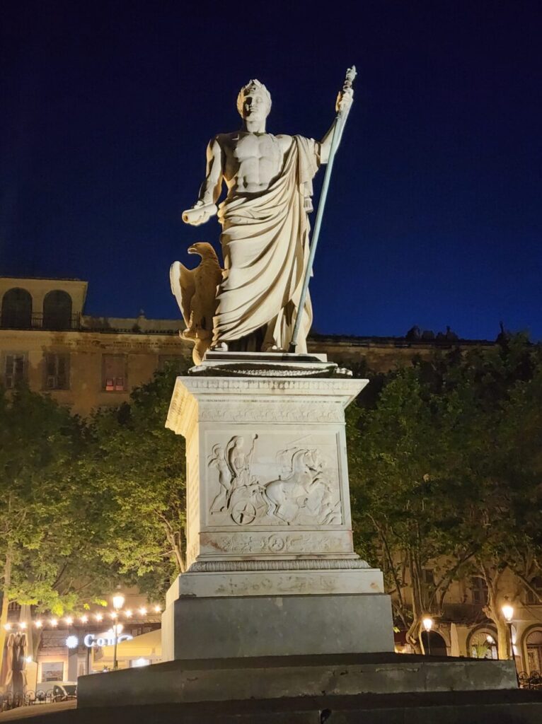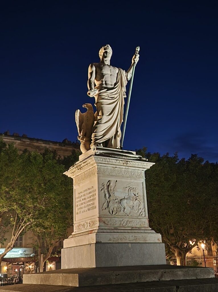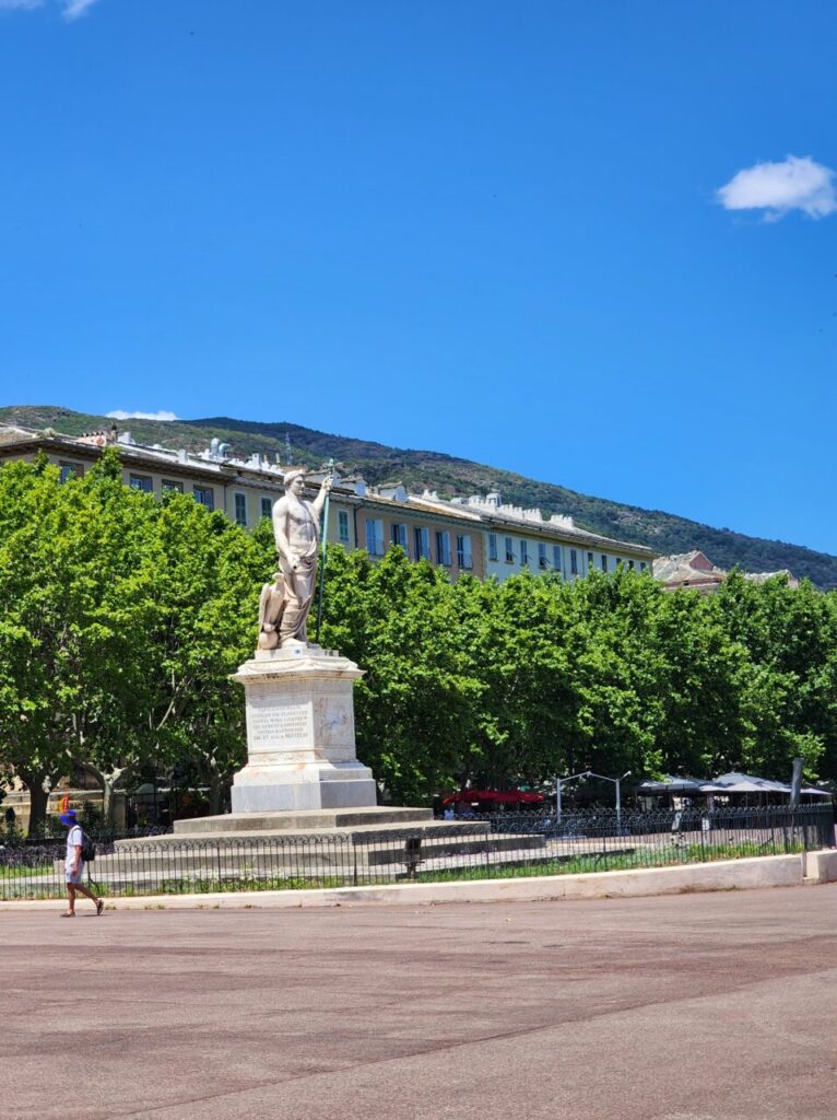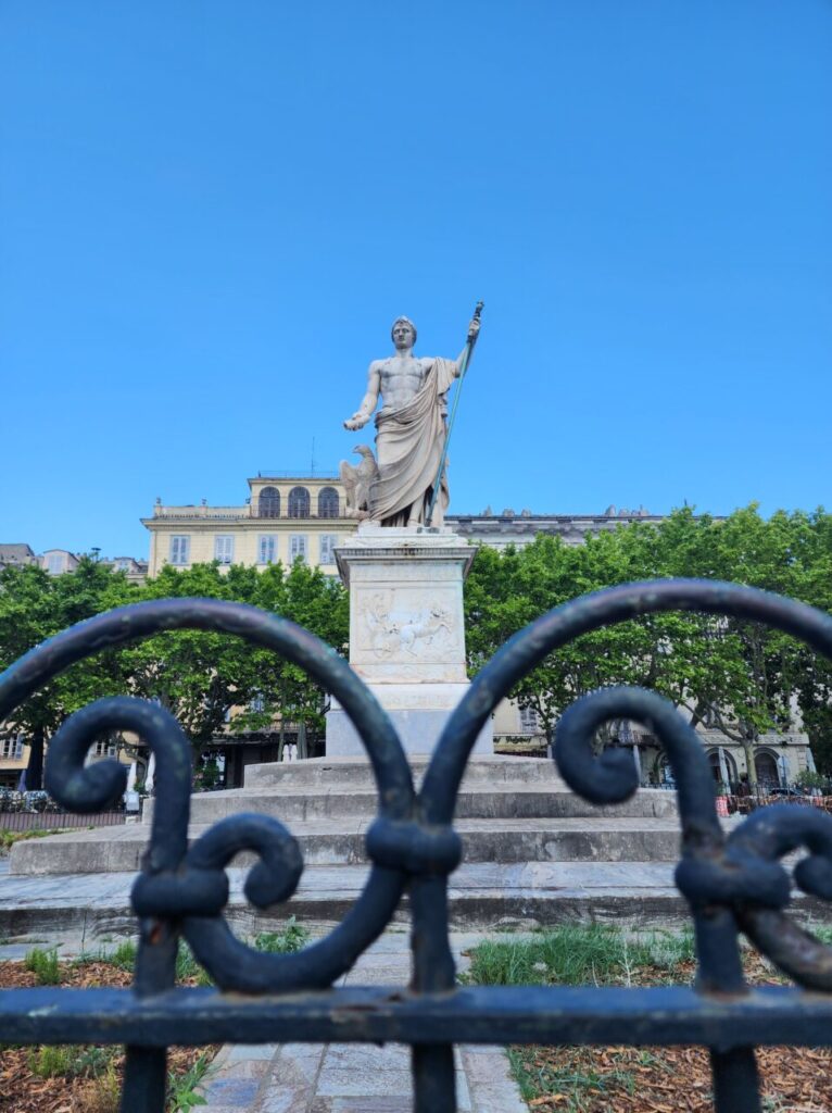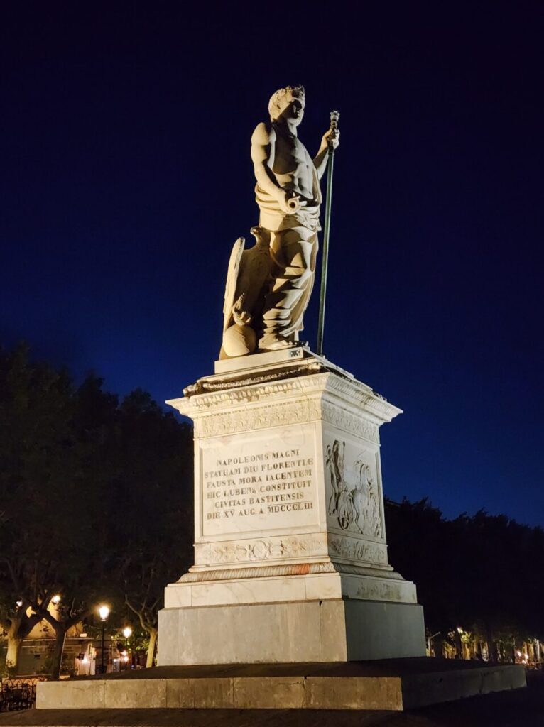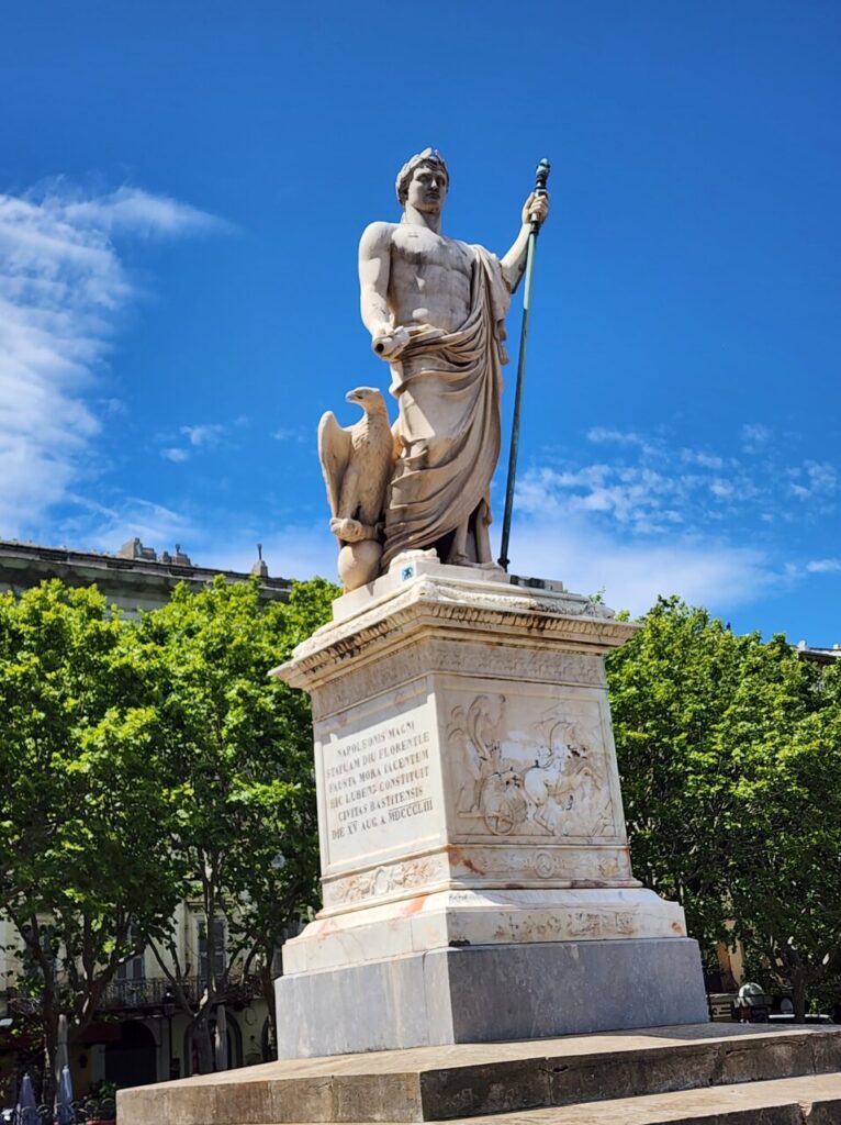 その玄関口でもある港町、バスティア(Bastia)の中心、サン・ニコラ広場には、ナポレオンがイタリア側を睨みつけるように仁王立ちしています。