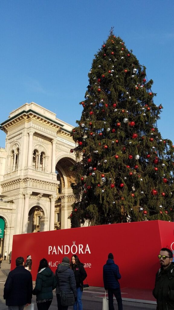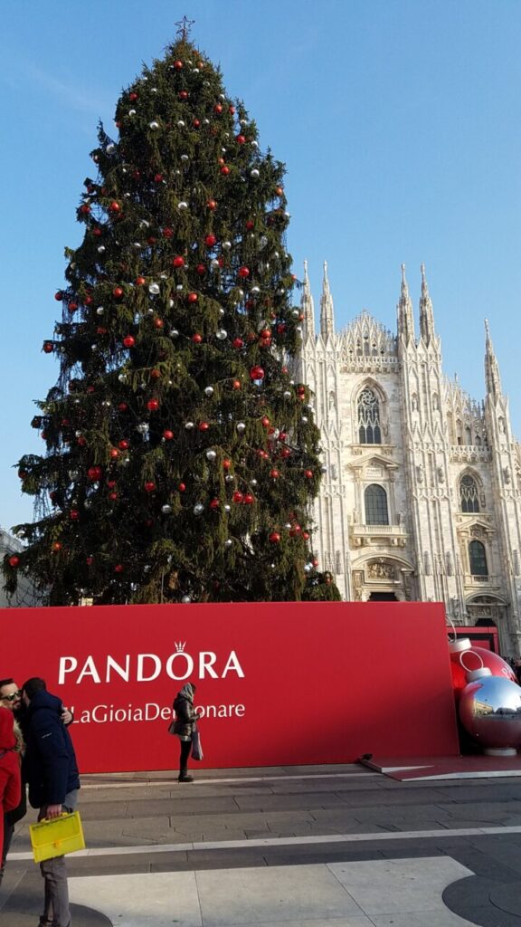 2016年のドゥオーモ広場には、PANDORAのクリスマスツリーが聳え立っていました。