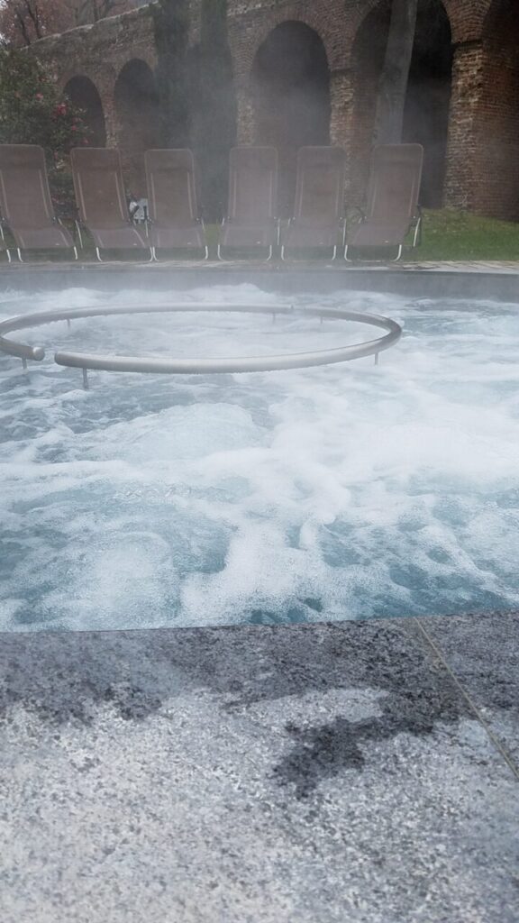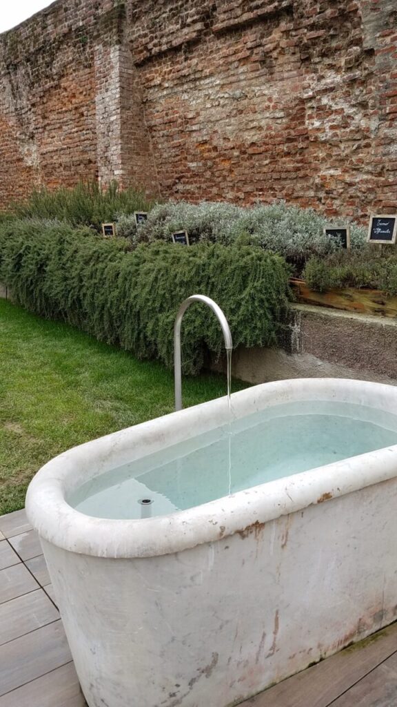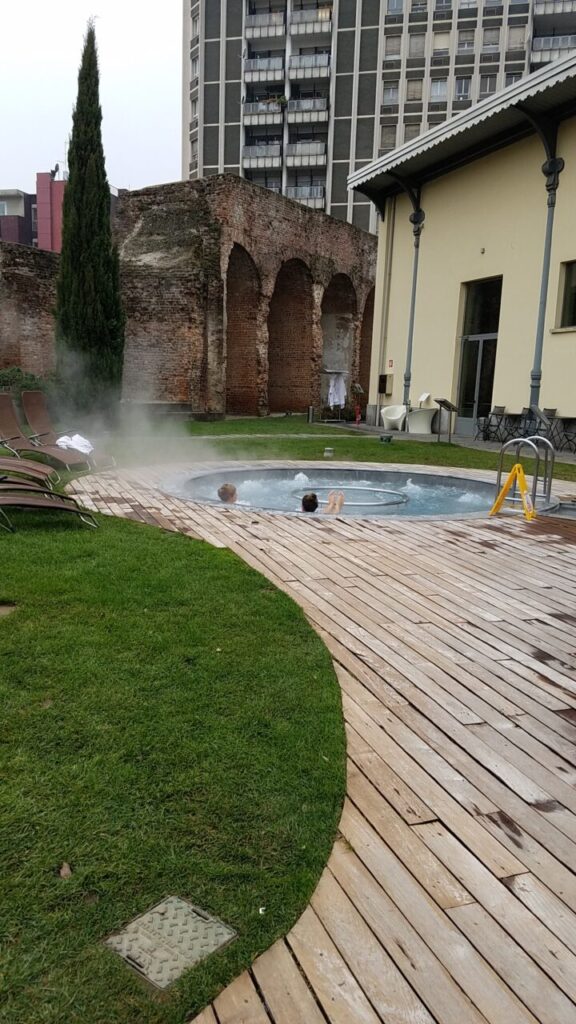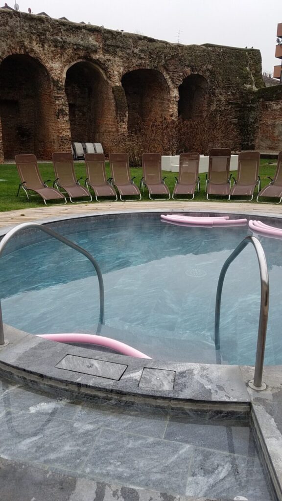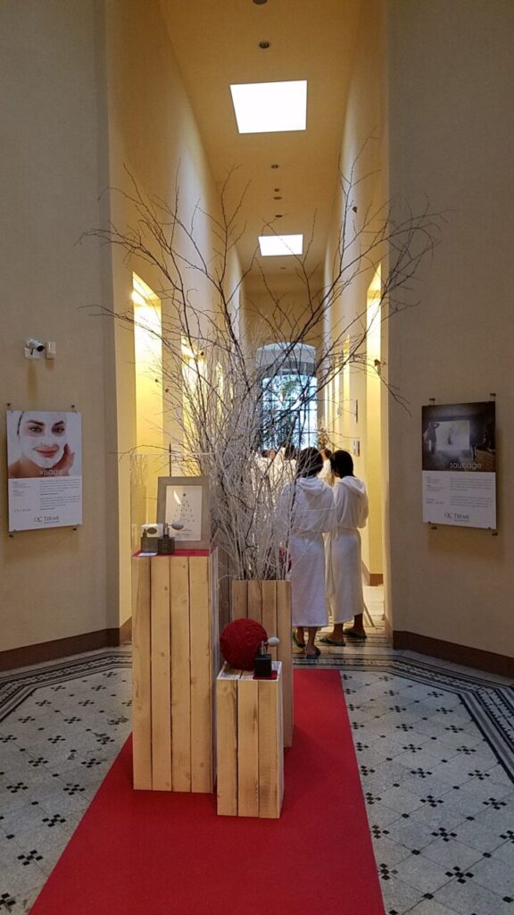 歴史地区にスパがあるため、ローマ帝国時代の壁そのままを利用した内観になっています。
