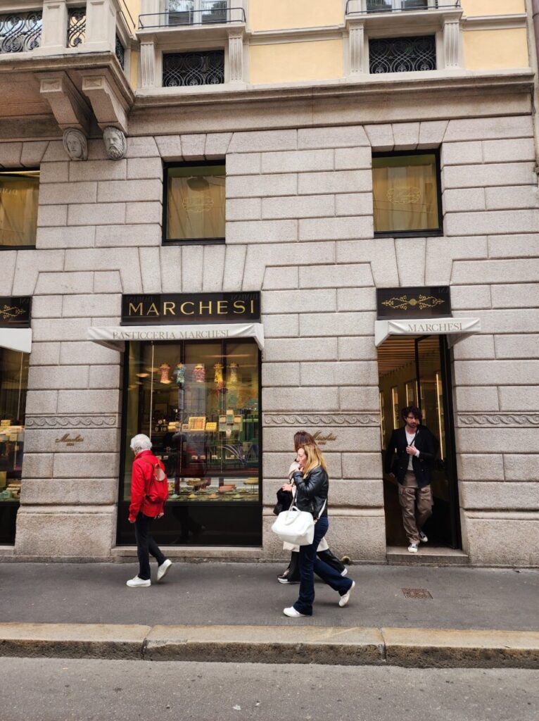 こちらは、1824年創業当時からミラノのこの場所に店を構える、コルネットが人気のパスティチェリア「マルケージ」。