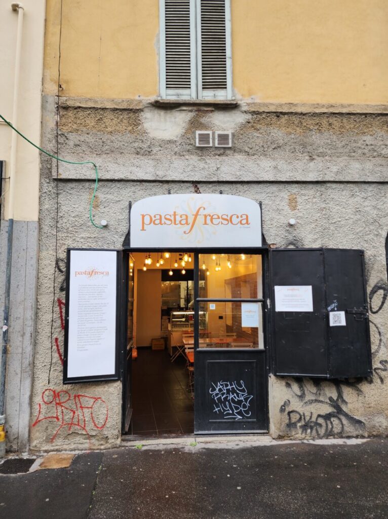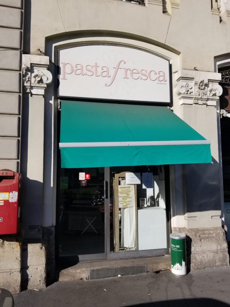 「最後の晩餐」のサンタ・マリア・デッレ・グラツィエ教会から歩いて3分ほどのところにあるパスタ専門店。