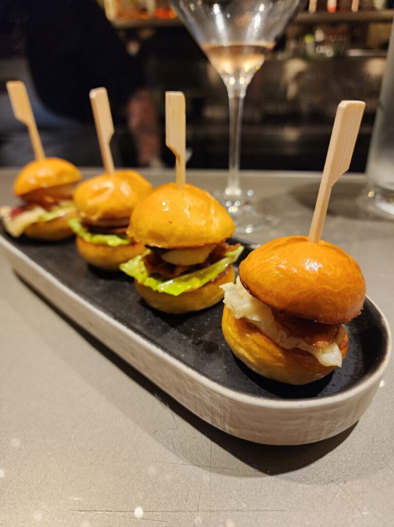 in 4 mini burger, with truffle sauced and bacon