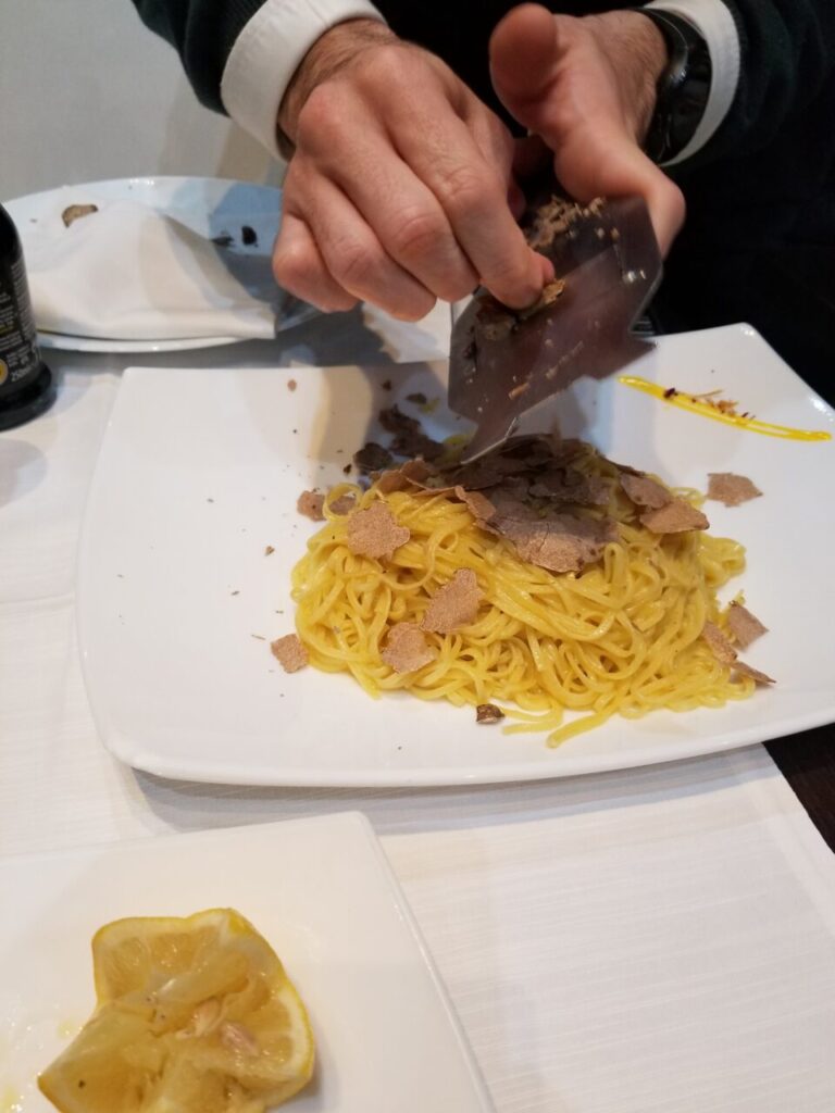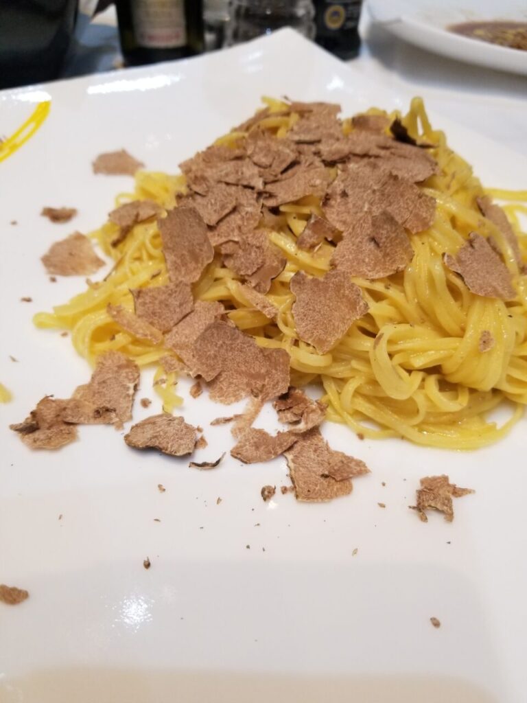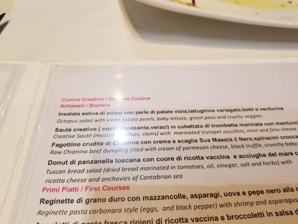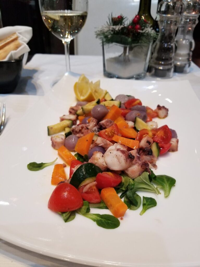 パスタは白トリュフのやつで言うまでもなく、イタリア食材でもポピュラーな紫芋Vitelotteとタコのサラダが良かった!