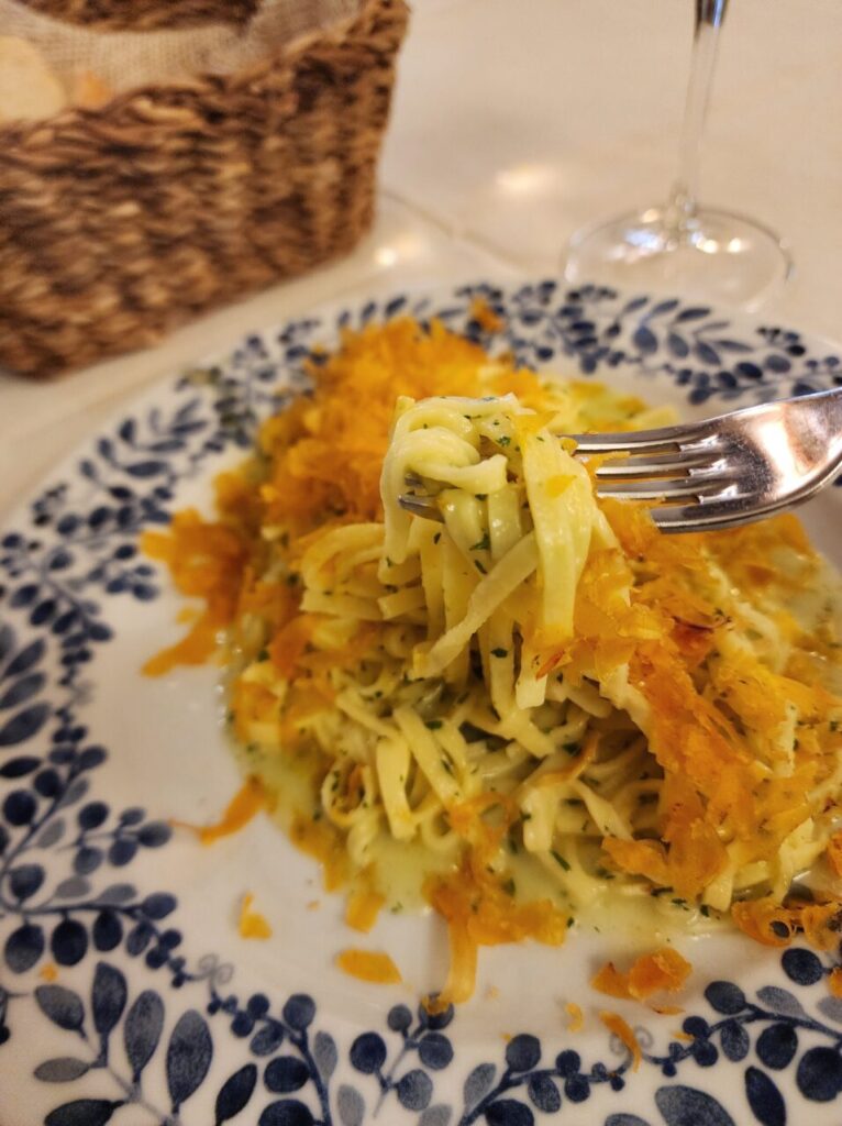 そして、今日の一皿は、ボッタルガ(Bottarga)のタリアテッレ(Tagliatelle)とのことで、ここも迷わず即決です。